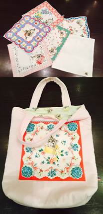 No.0025 ねこのイラストがかわいいハンカチ、バック